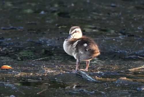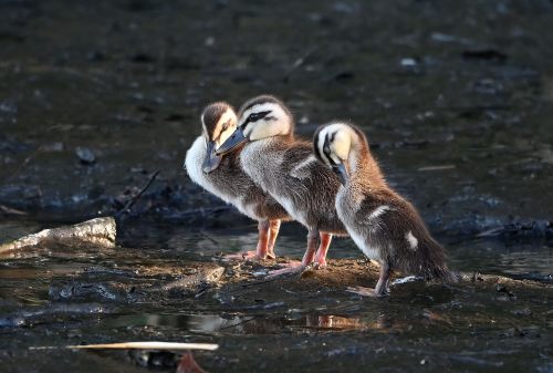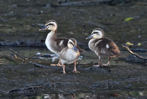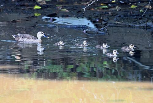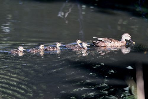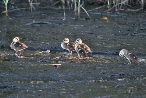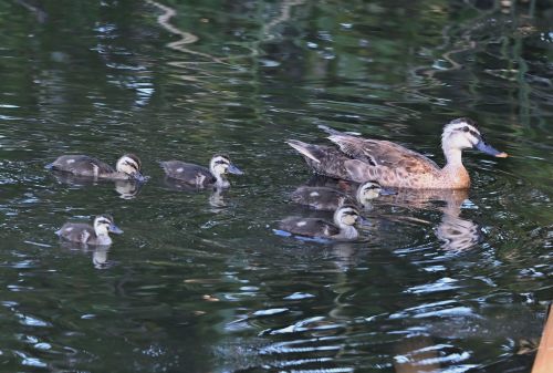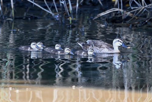 だいぶ大きくなったカルガモの雛が5羽。