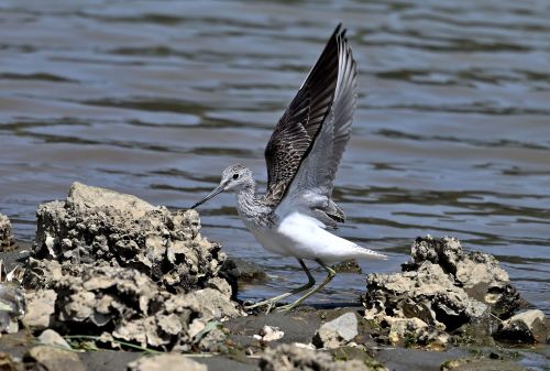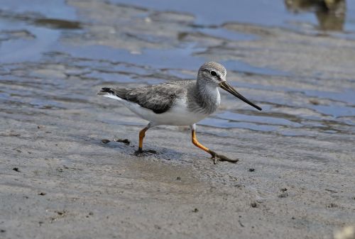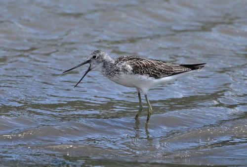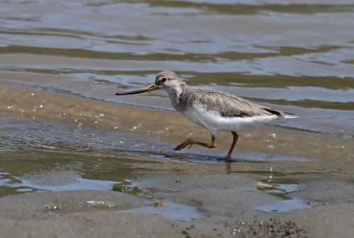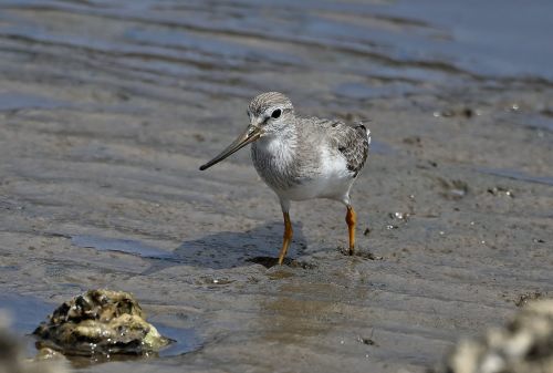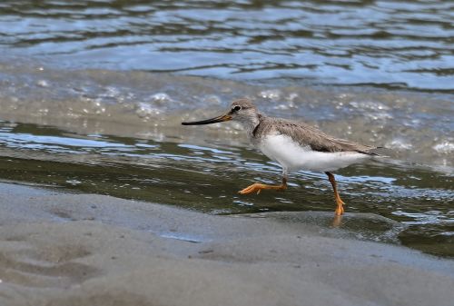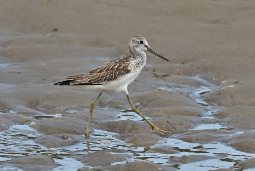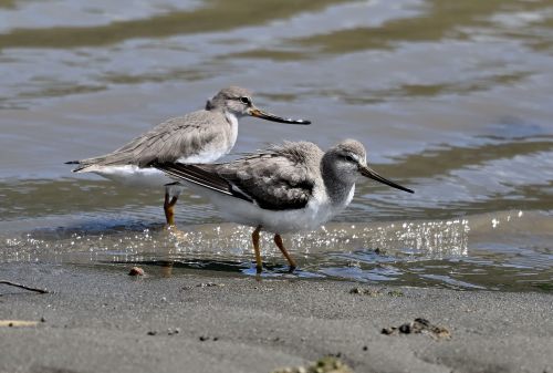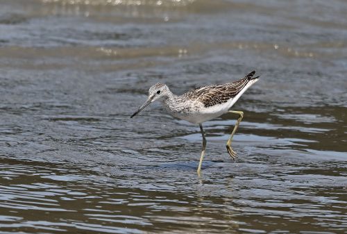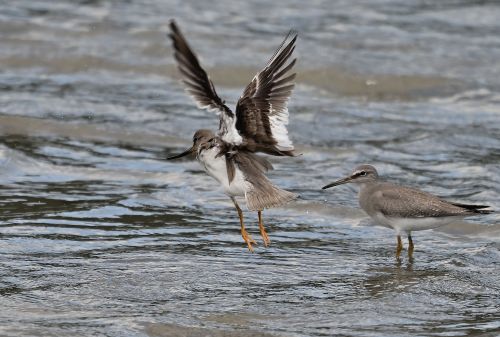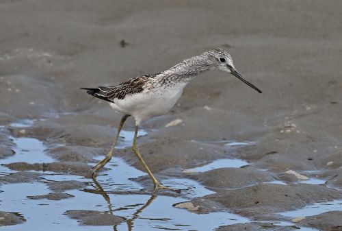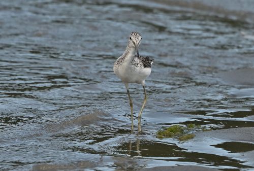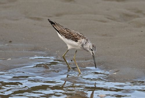 キアシシギ1羽、ソリハシシギ2羽、トウネン1羽に混じり、