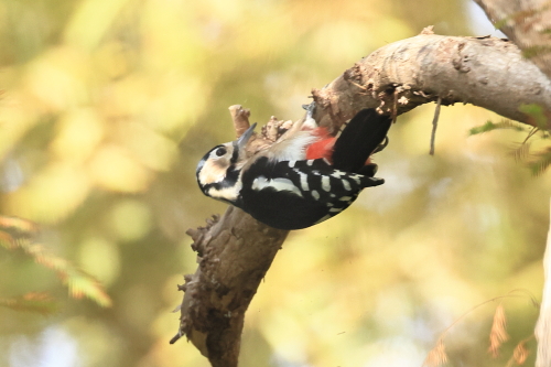 メタセコイアの林を歩いていると、アカゲラの声。
