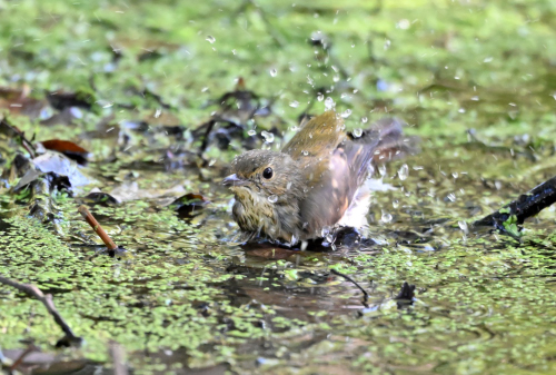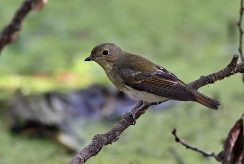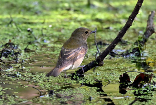水路に沿って歩いていると、キビタキ♀と遭遇。