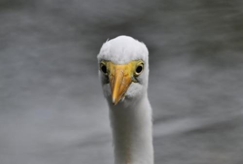 観察窓から覗くと、目の前にダイサギ。