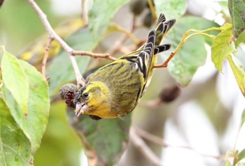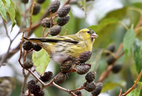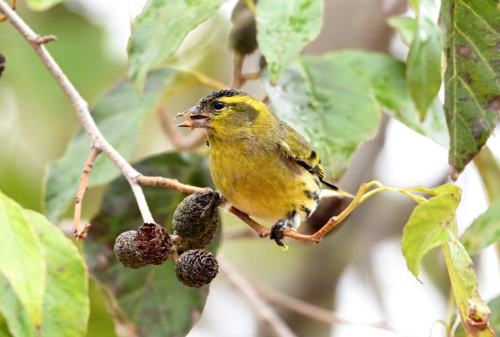 いつものようにハンノキの実を啄む。