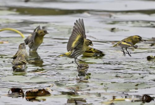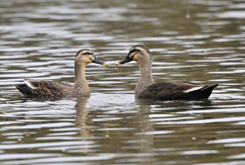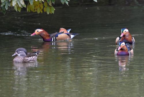 オシドリ5羽(♂4羽、♀1羽)が飛来。