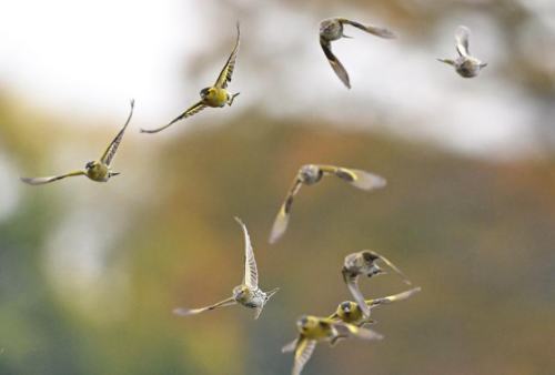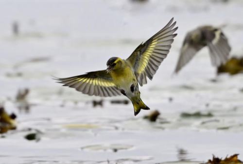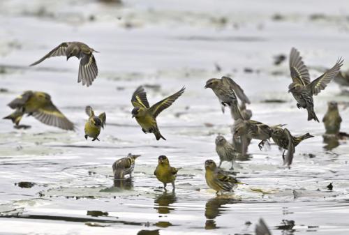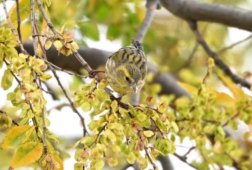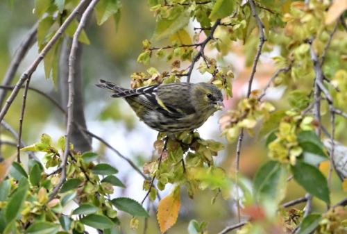 この日は、アキニレの実を食べるマヒワ。