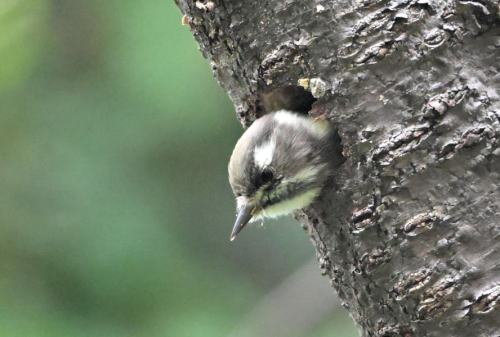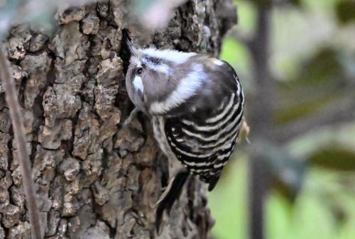 幹で虫を捕るコゲラ。