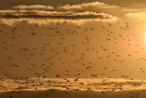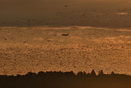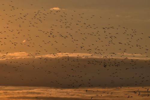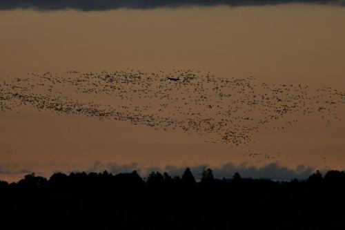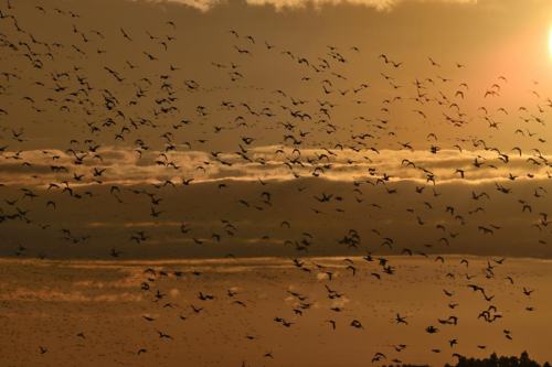 トモエガモ、オナガガモ等が混ざり、群舞。 |