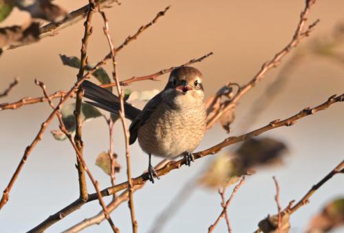 こんもりした枝の中にモズ。