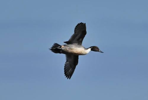 飛翔するオナガガモ。
