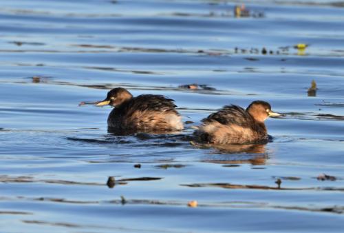 水面に2羽のカイツブリが並ぶ。