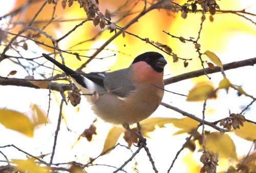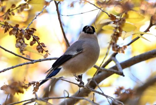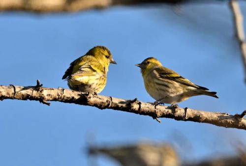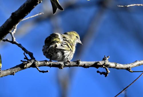 マヒワの10羽ほどの小さな群れ。