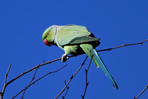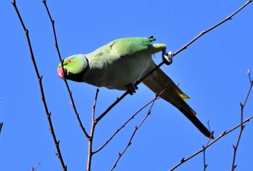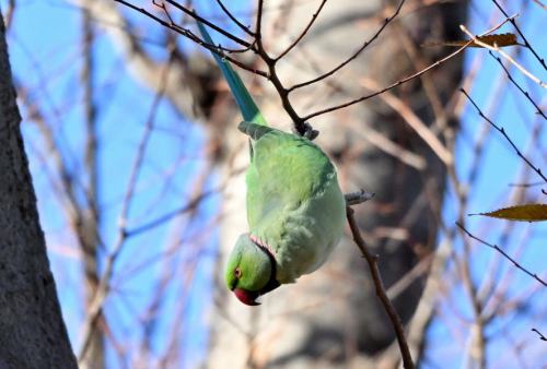 ワカケホウセイインコは、小枝でゴソゴソ。