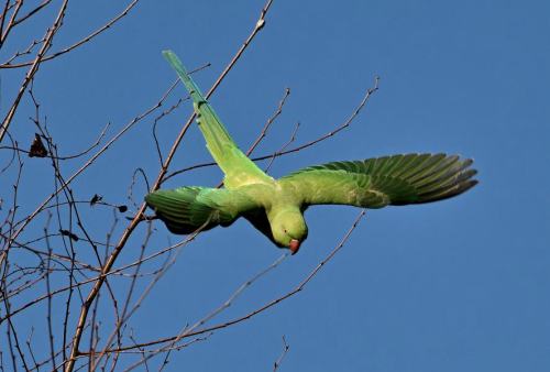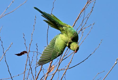曲芸をするワカケホウセイインコ。