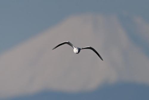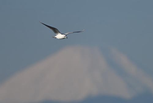 富士山を背景に、飛び回る。