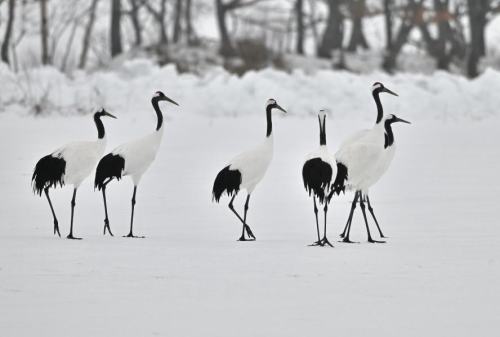 | タンチョウの家族。 家族ごとに、いくつかのグループに。 |