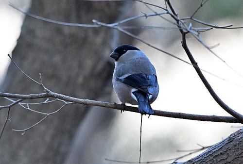 水場近くの枝に止まるウソ♀。
