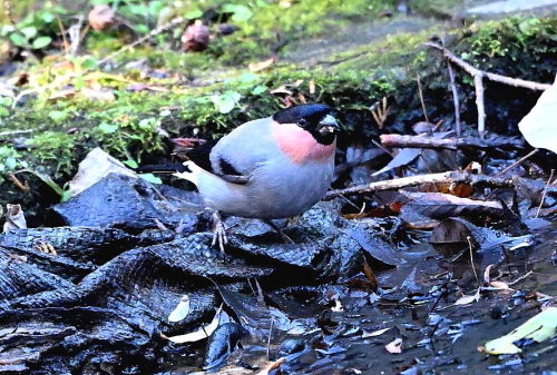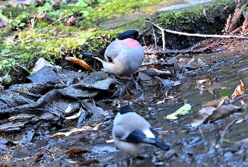 ウソ3羽が水場近くに移動していた。