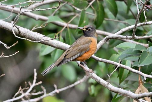 枝の中にオオアカハラ。