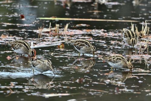 睡蓮池のタシギは、7羽に。