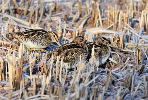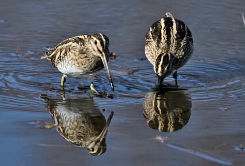 帰りの途中、睡蓮池を覗くと、タシギは採餌中。