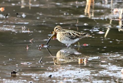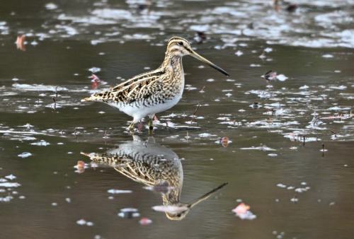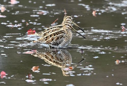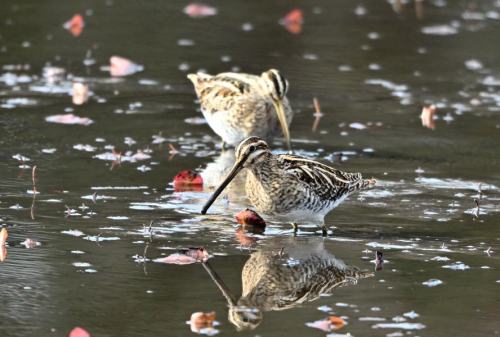 睡蓮池のタシギたちは、採餌中。