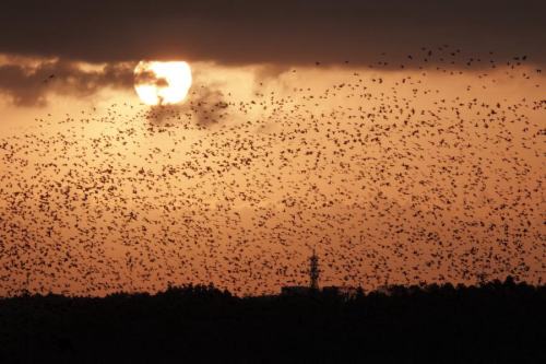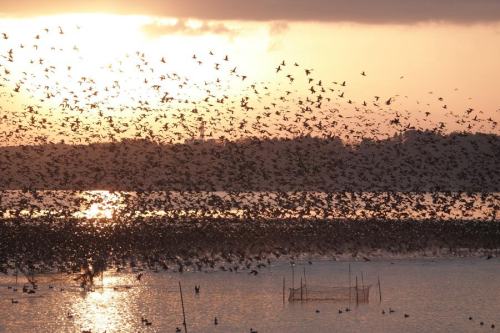 夜明けに、田畑から群舞の帰還を狙ったのだが、