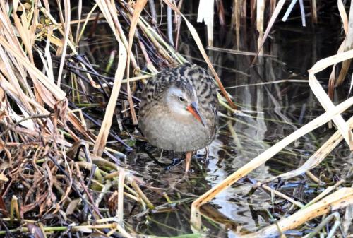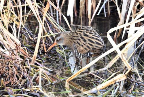 ガマの中をウロウロするクイナ。
