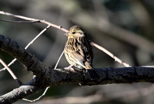 横枝で佇むアオジ。