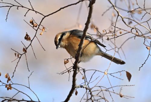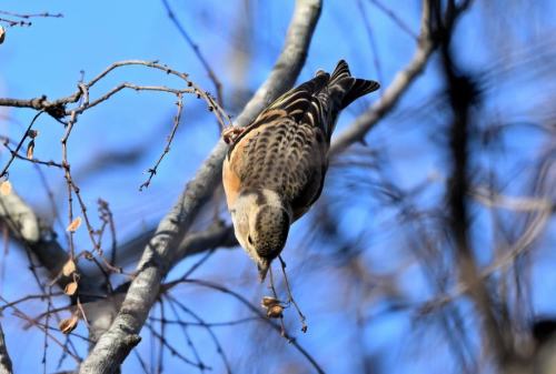 アキニレの実を啄む。