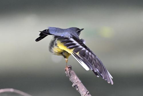 奥の池では、キセキレイがストレッチ中。 |