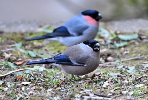 この日もウソたちが、地上で採餌中。
