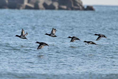 | 大きなスズガモの群れが飛び出す。 | |