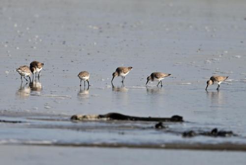 | 同じく、ハマシギ6羽が採餌中。 | |