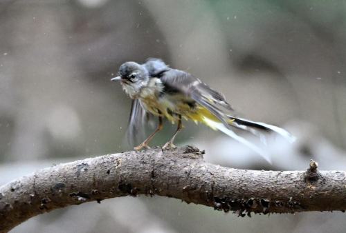 水浴び後のキセキレイ。