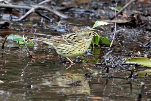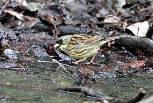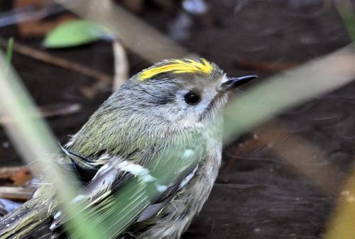 遊歩道下の水溜まりで、キクイタダキが水浴び。