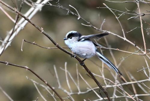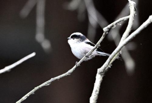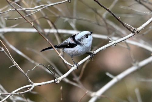 池の傍の小枝の中にエナガの群れが混入。