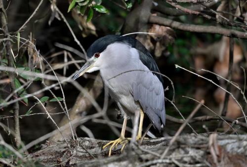 三角池に珍しくゴイサギ。