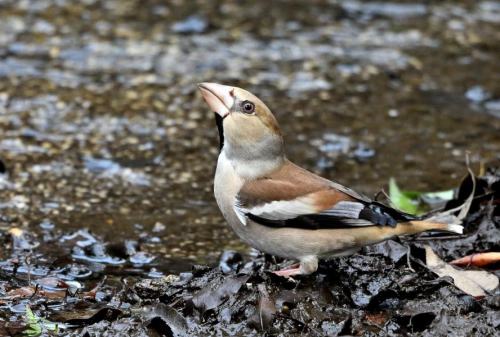 近くにシメが降りて来た。