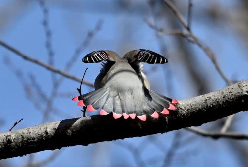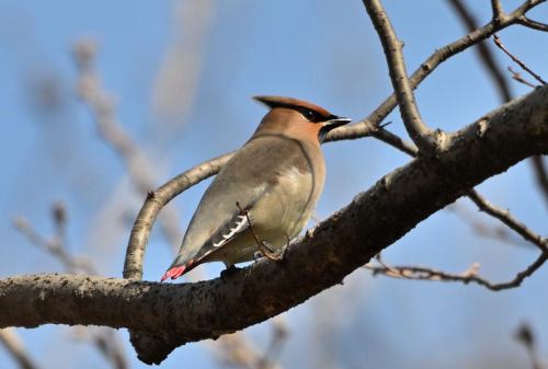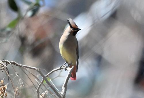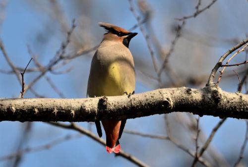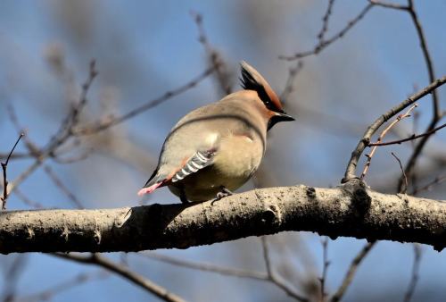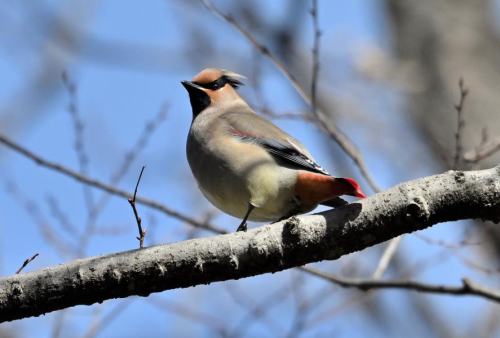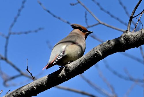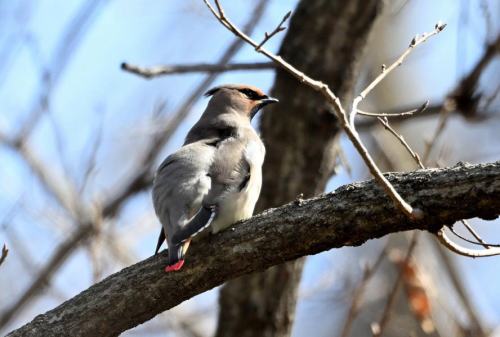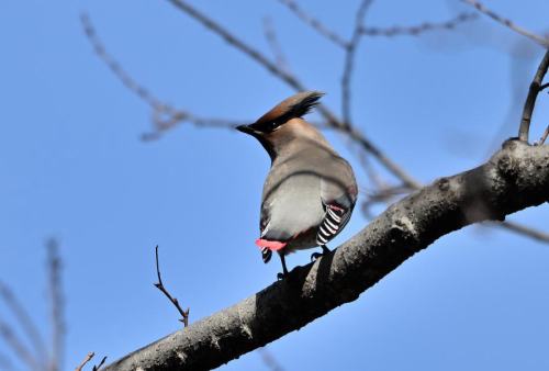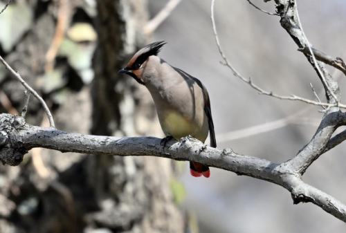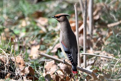 森の奥に居たヒレンジャクが遊歩道近くに出て来た。
