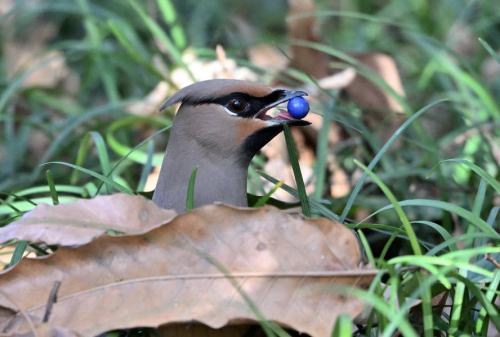 リュウノヒゲの実を食べに降りるのだが、到着時は木々