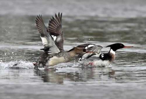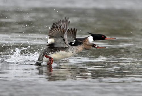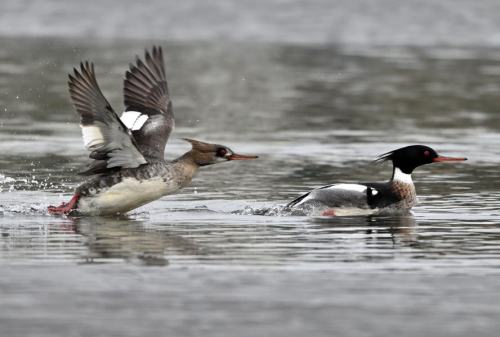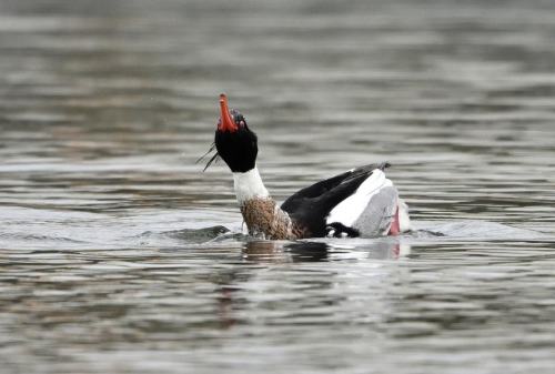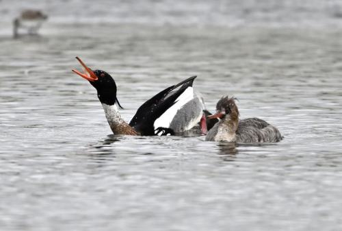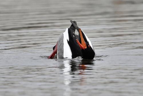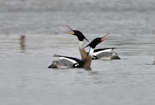 この時期、岸辺近くの浅瀬まで近づき、採餌・ディスプレイ