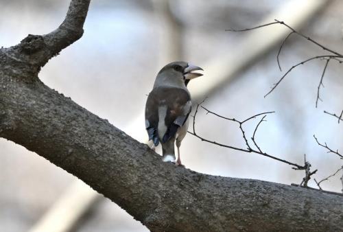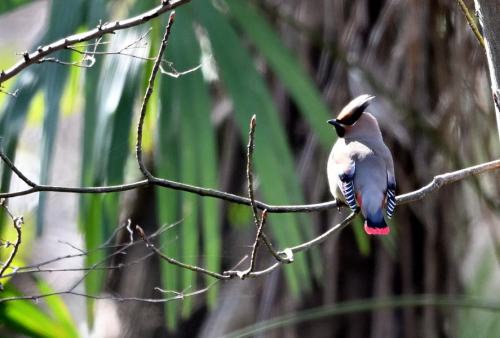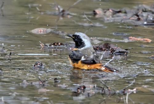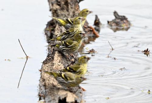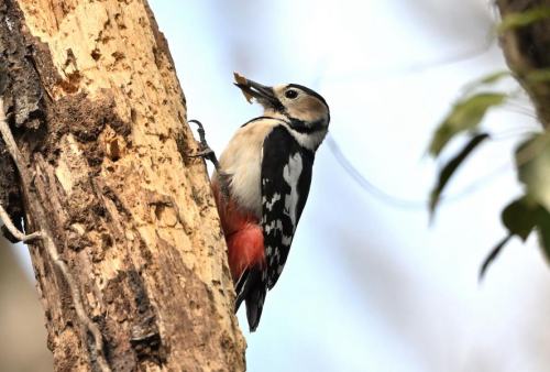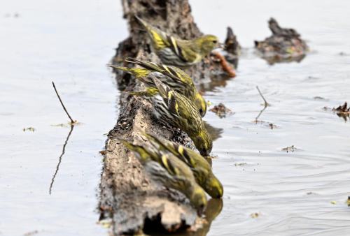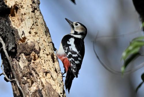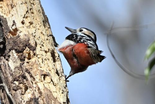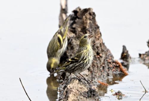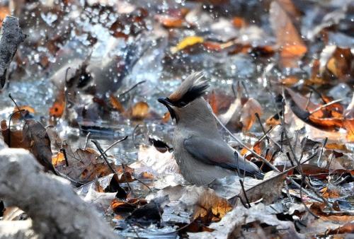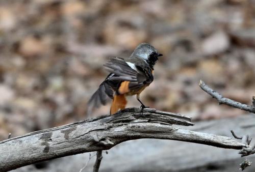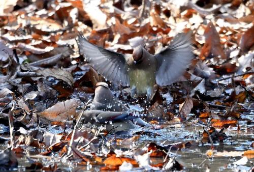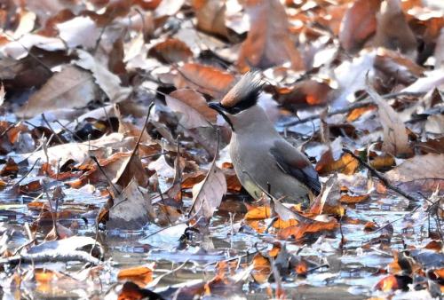 残念ながら突き出た枯れ木には止まらず、枯葉の中で