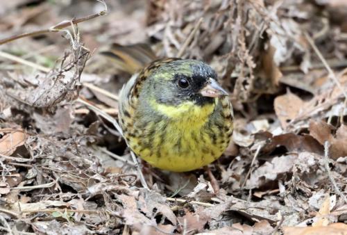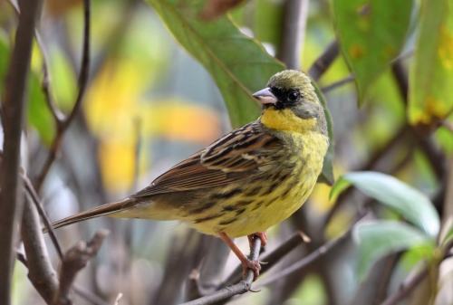 葉っぱの中のアオジ。