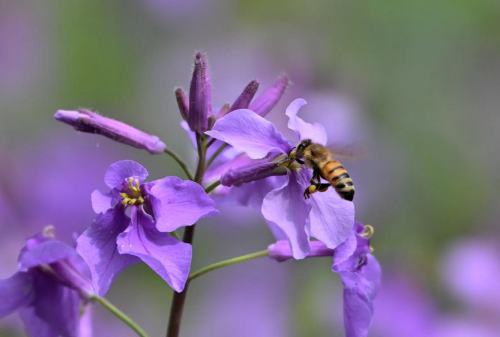 ムラサキハナナにミツバチ。