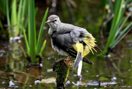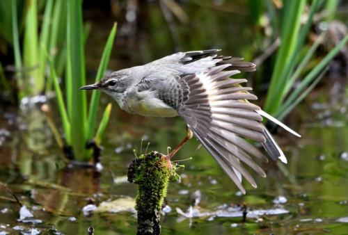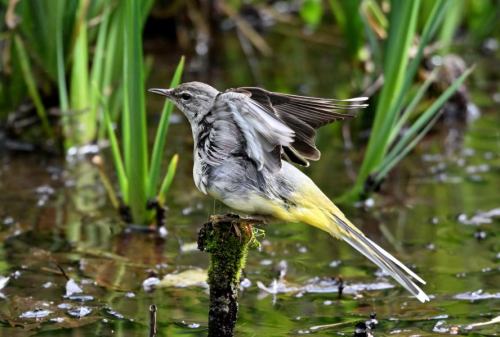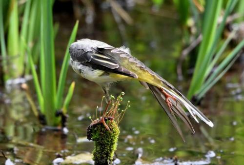 湿地帯の草むらからキセキレイが登場。