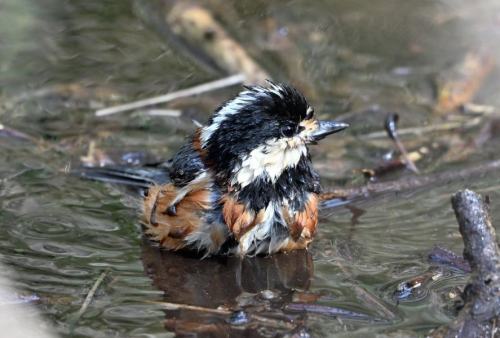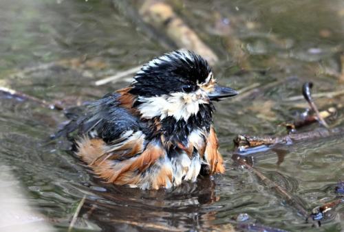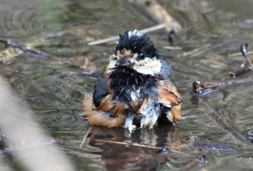 水溜まりの様子を窺うヤマガラ。